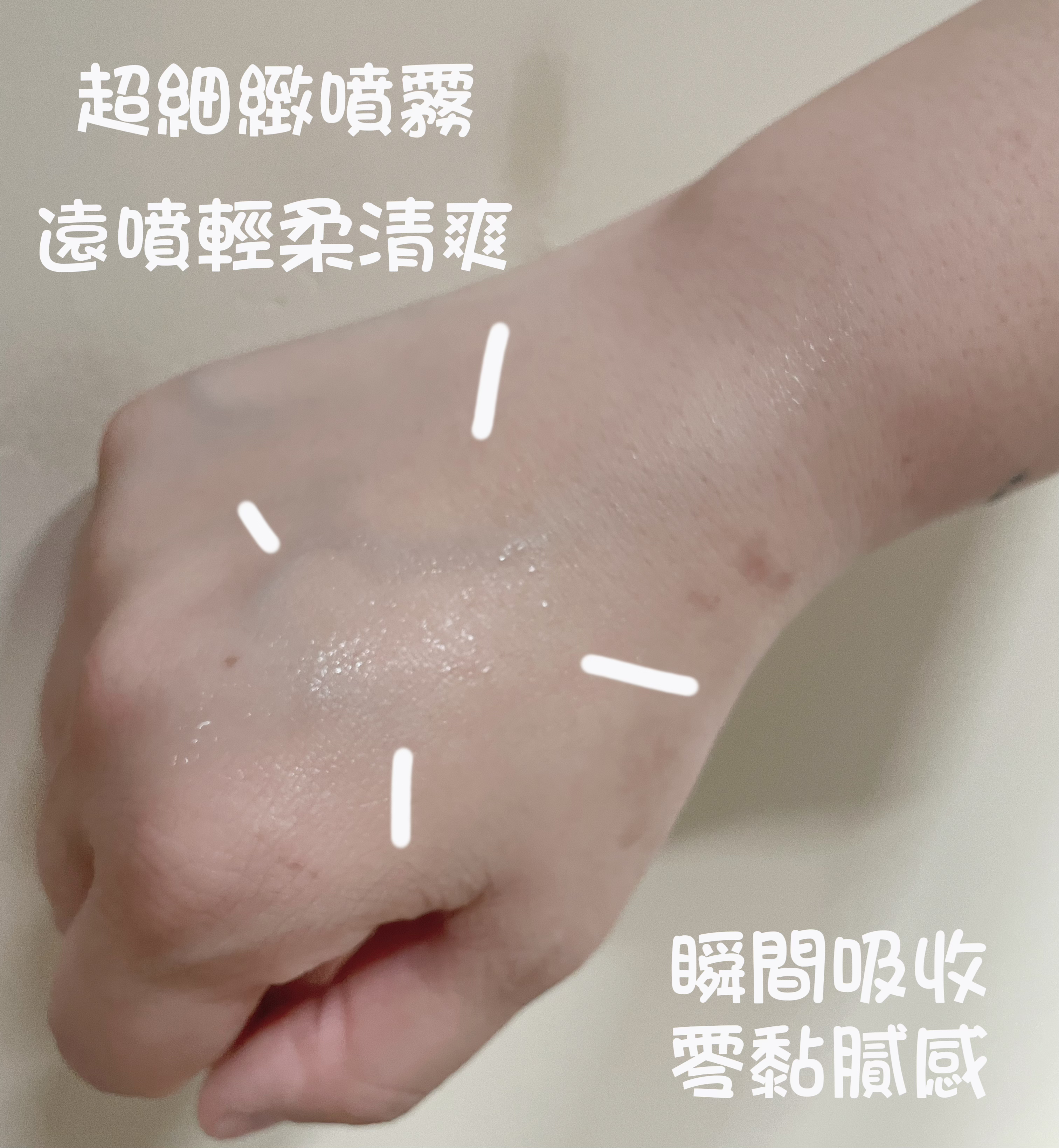 超細緻噴霧噴在手心後搓8至10下,清爽滋潤同時聞到淡淡香味。